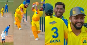 WATCH: Suresh Raina turns back the clock with a towering six off Noor Ahmad, leaves MS Dhoni amused at CSK Roar 26